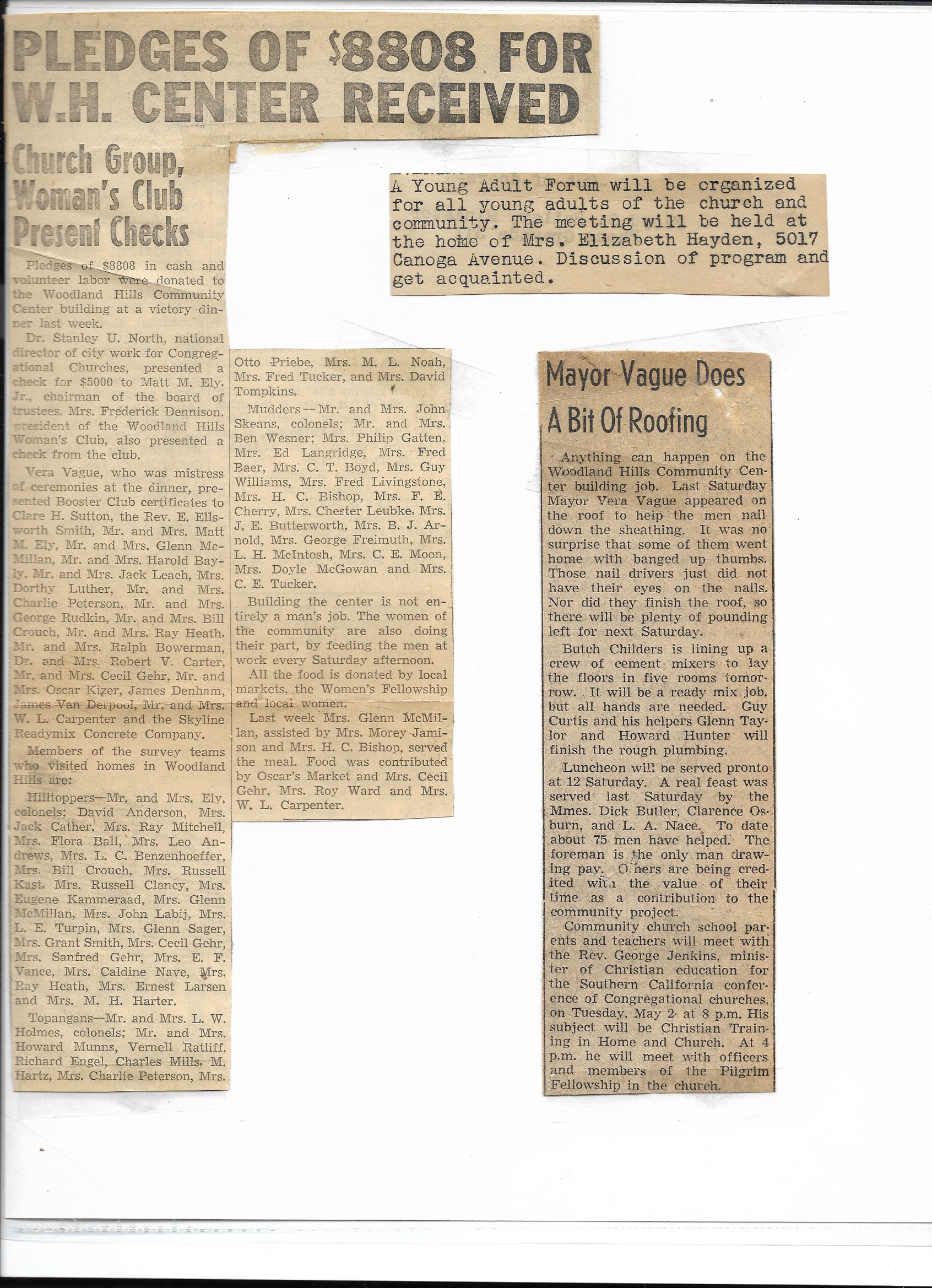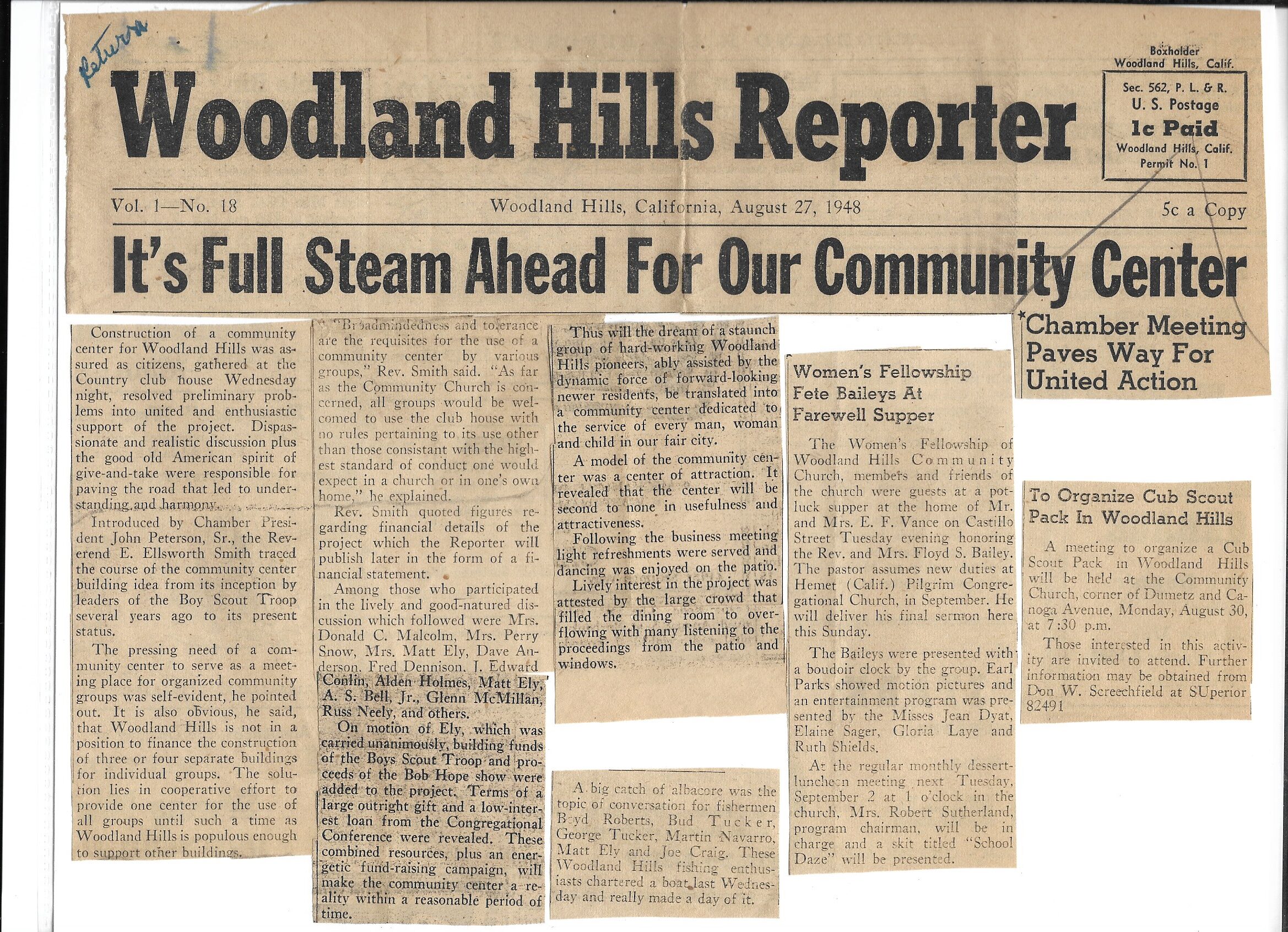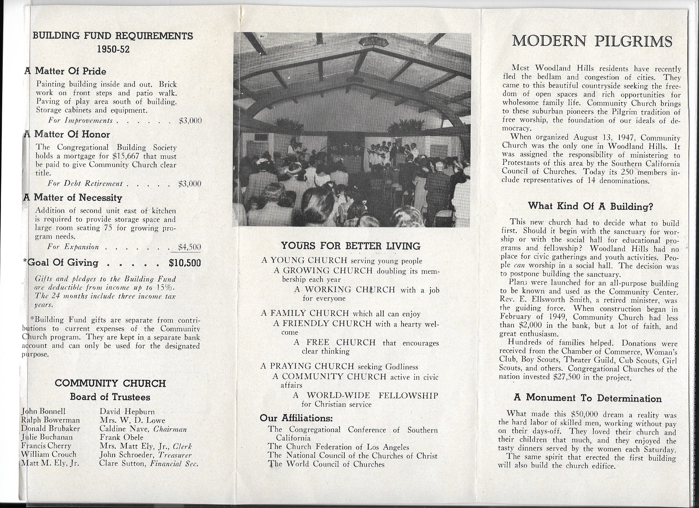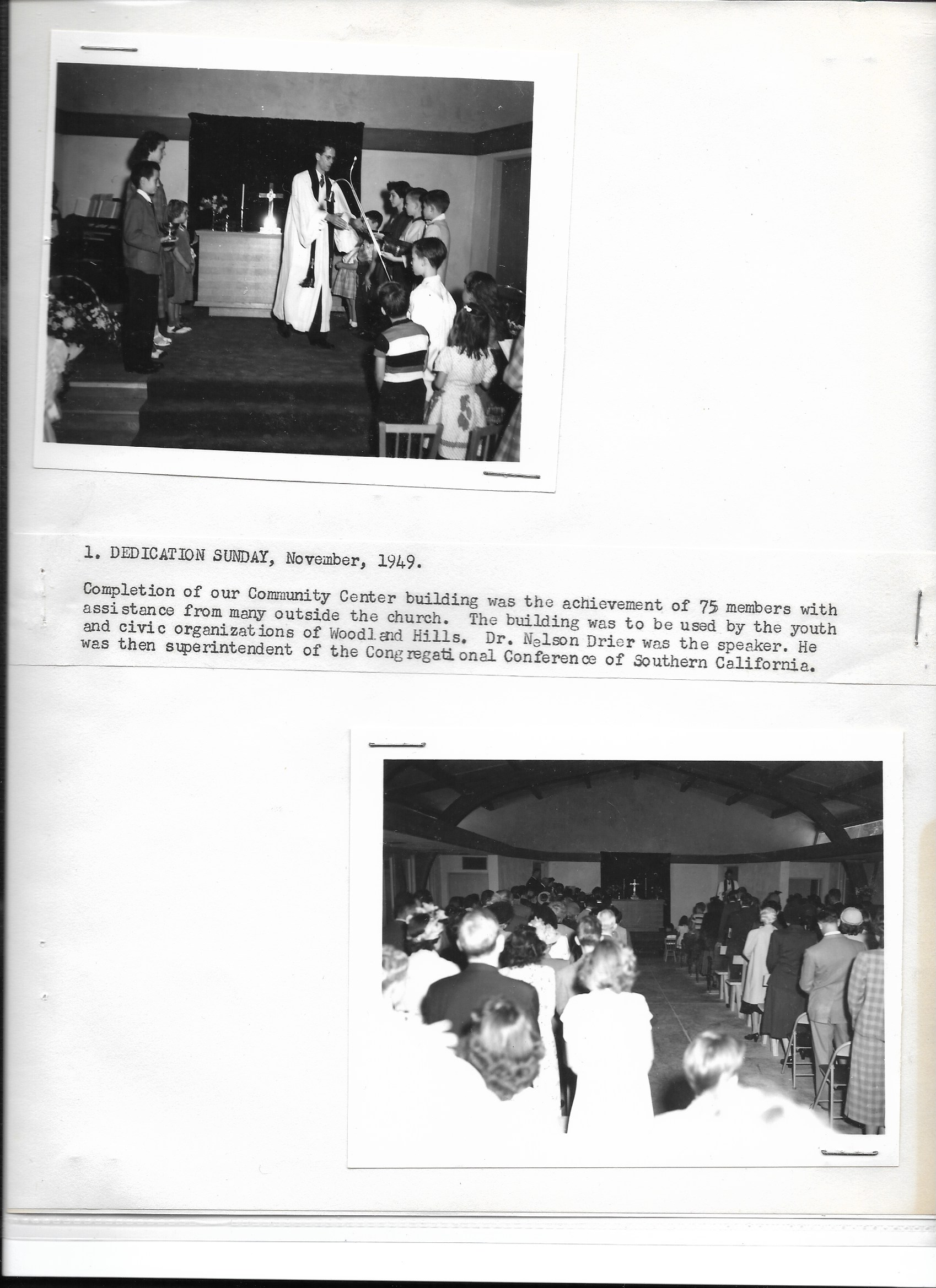 With the support of the Southern California Council of Protestant Churches, Dr. Nelson Drier began the process of organizing a drive for a Community Center which would host the Boy Scouts, Woodland Hills Chamber of Commerce, and a church.
