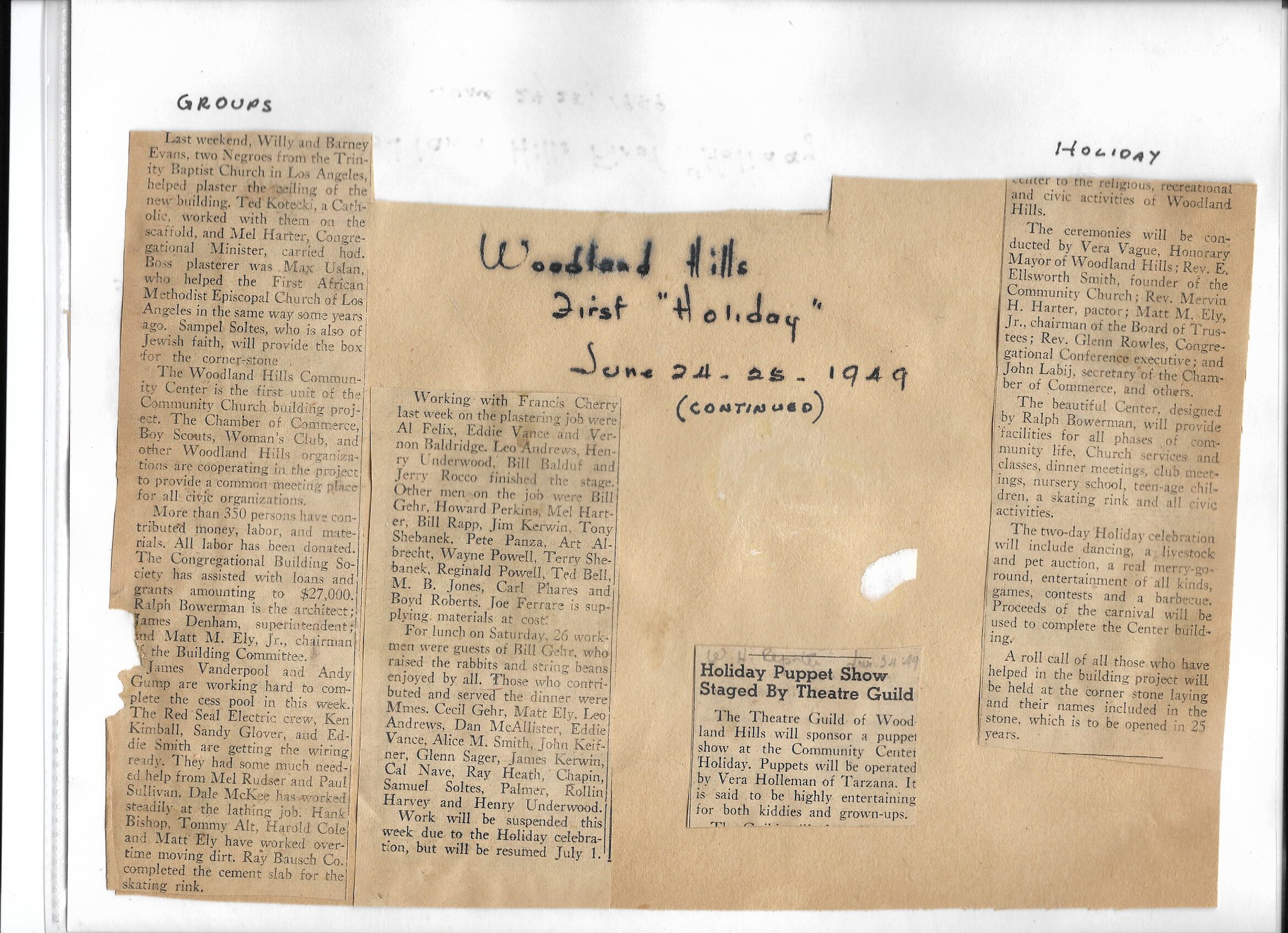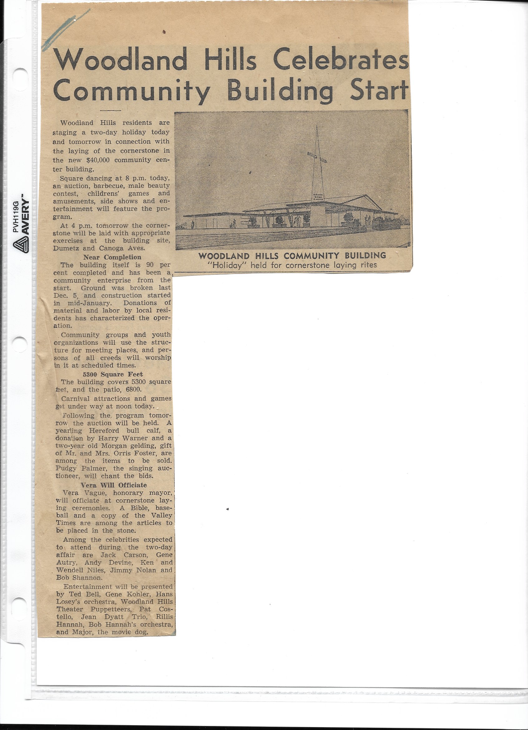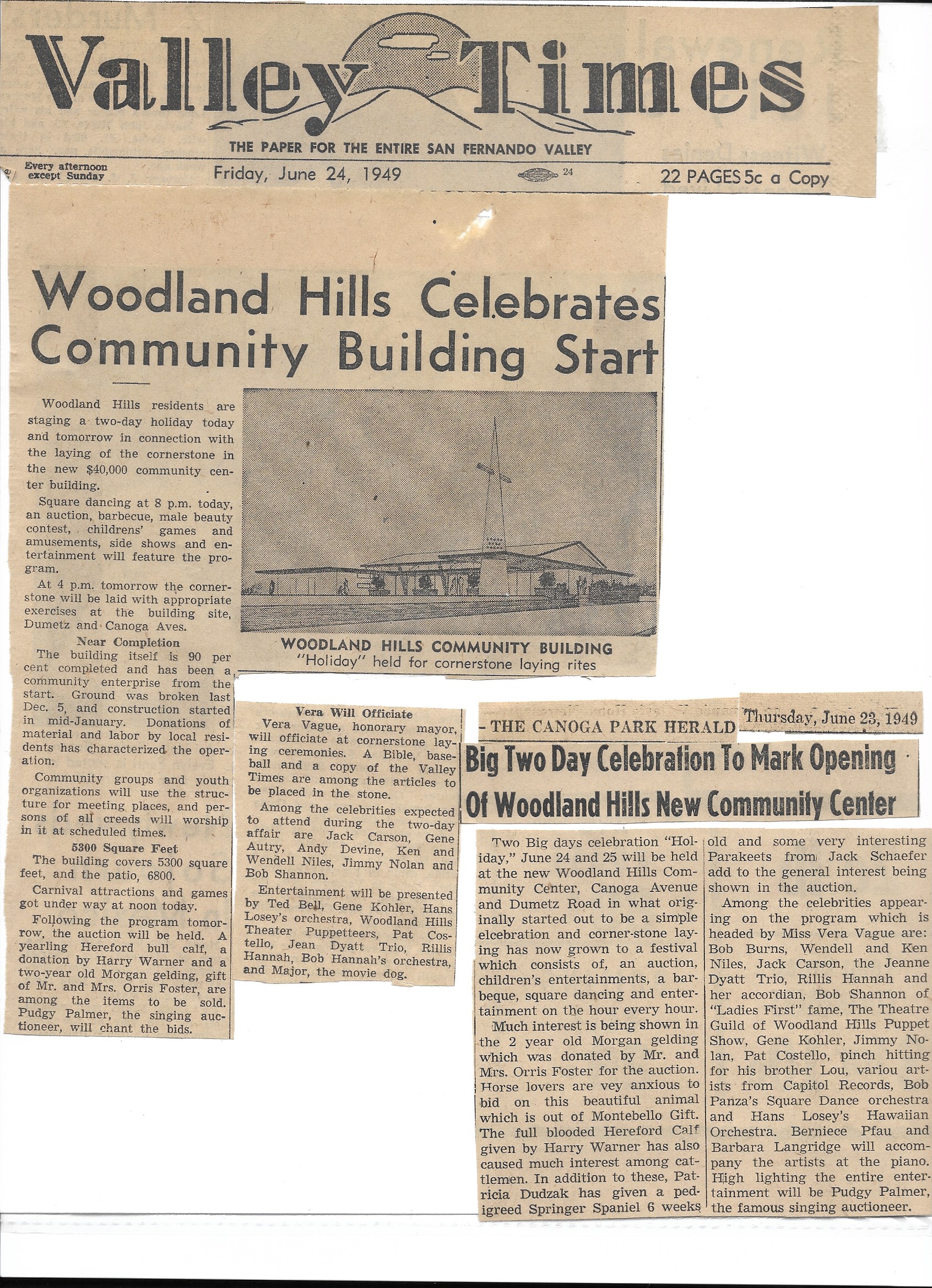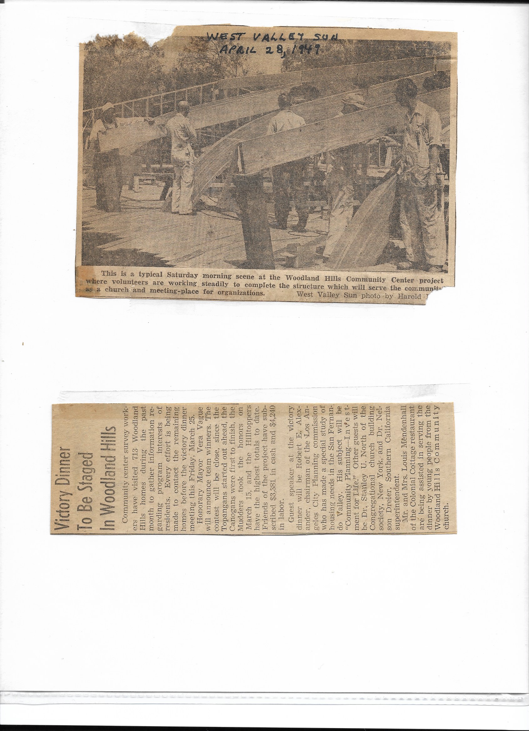 With the support of the Southern California Council of Protestant Churches, Dr. Nelson Drier began the process of organizing a drive for a Community Center which would host the Boy Scouts, Woodland Hills Chamber of Commerce, and a church.