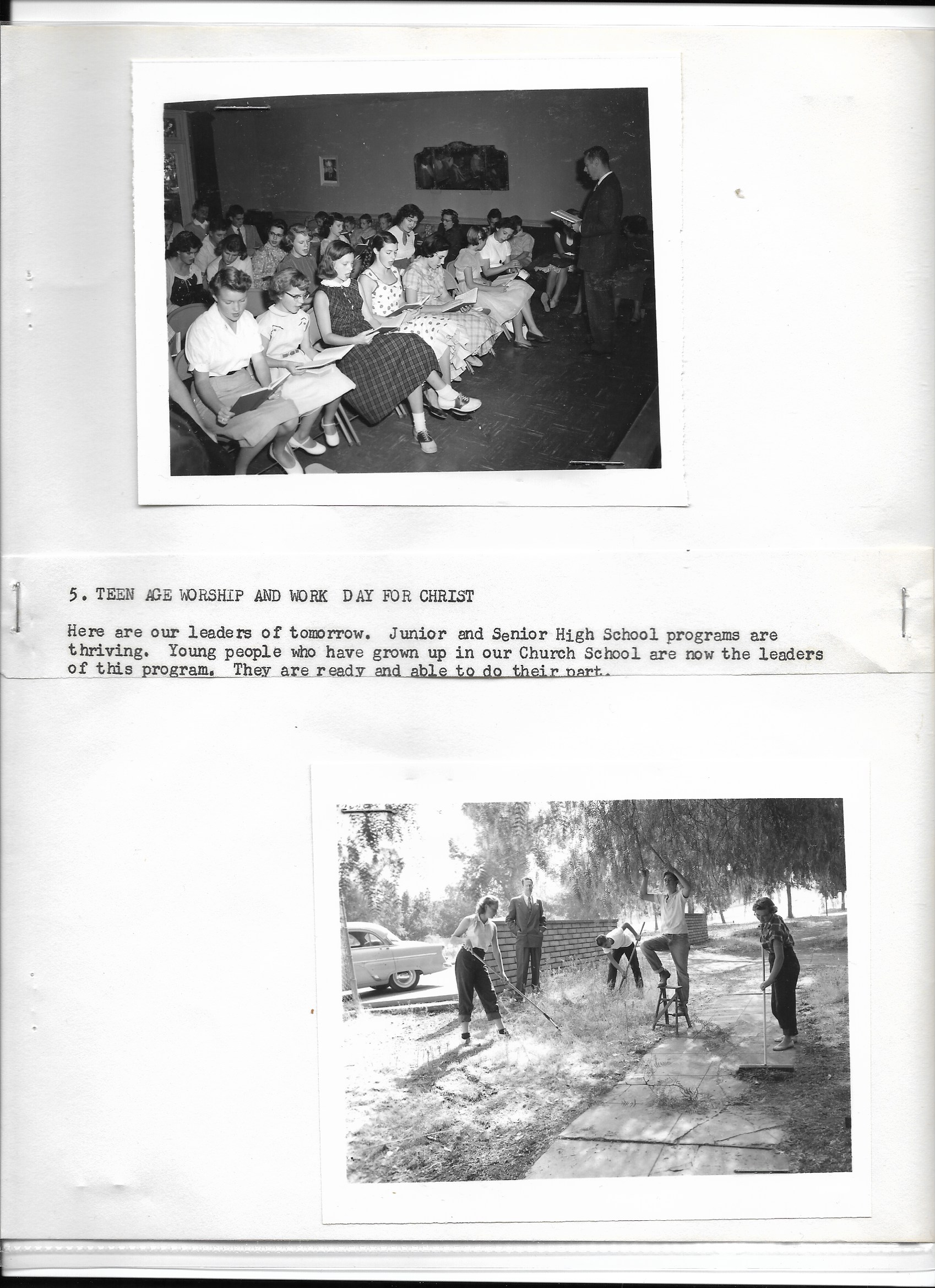 Our Christian Education program became Youth Ministries. The directors were Rev. Floyd Bailey, Grant Smith, David Anderson, Glen Corbin, Mrs. Frank Denson, J. G. Wood, Dr. Pepronia Merjanian, Joan Thye, Patti Rea, Walter Higgins, Alan Abel, Signe Hardesty, Annie Patton (first paid coordinator), Barbara Millet, David Mark, Mary Conly, Avis Buzolich, Karen Rea, Heather Medvitz, John Gregory, Ann Bridge, Jeannine Ondrejko, Trina Taylor, Corrine Draper, Judy Shumov, Annette Eddy, Emma Wilkins and currently Marshelle Giggles-Mills.