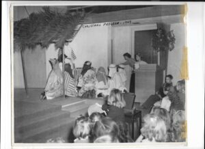 The Woodland Hills Community Church Nursery School has been in operation in its present form since the summer of 1955. It started out as a cooperative nursery school for the community in 1949 under the leadership of Mrs. Howard Munns. Mrs. Oscar Reese was the director in 1951. Other directors were Marilyn Pedretti, Marjorie Morris, and Anita Hellstein, who improved the school’s reputation to be the best in the area.